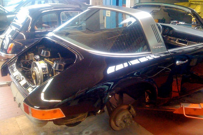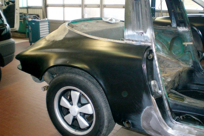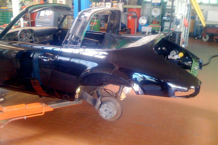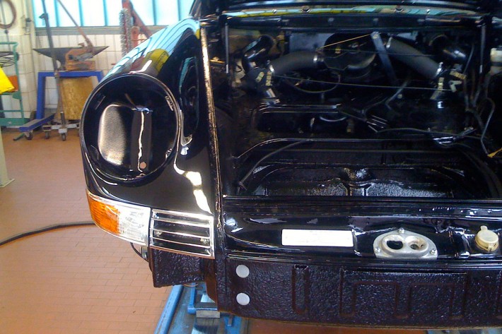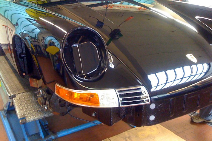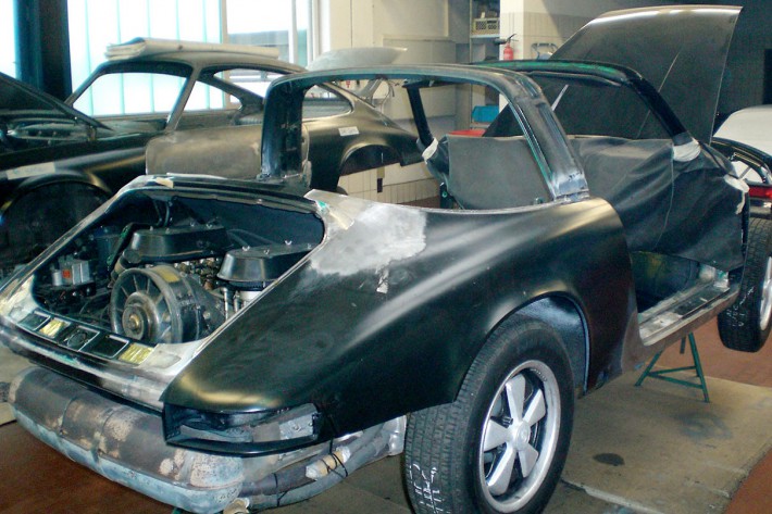 Fahrzeug kam zu uns in einem desolaten Zustand. Durchrostungen an sämtlichen tragenden Teilen der Karosserie. Der 911er wurde einer Komplett-Restauration (Karosserie, Motor u. Innenausstattung) unterzogen. Arbeitsaufwand: ca. 800 Stunden.