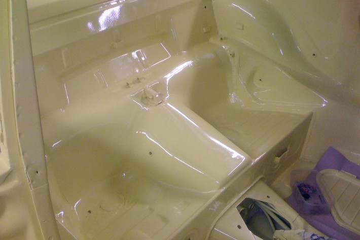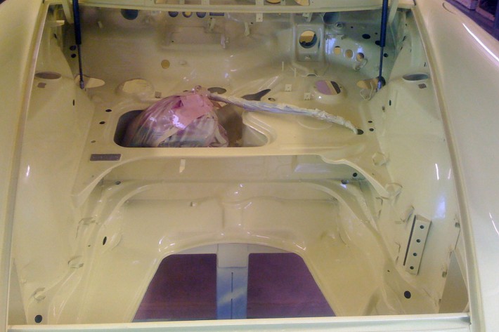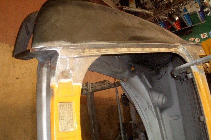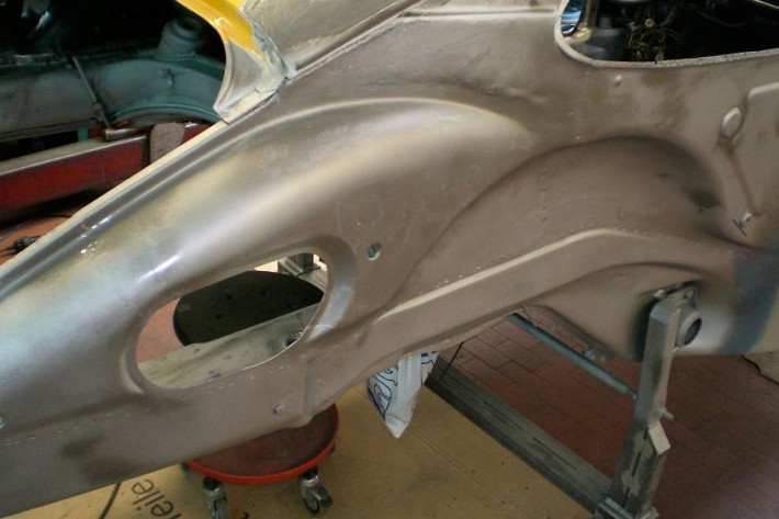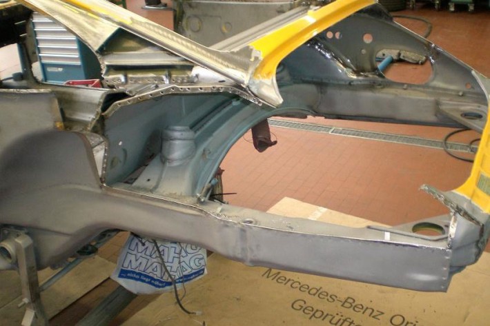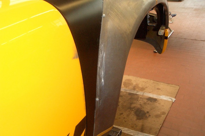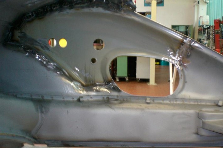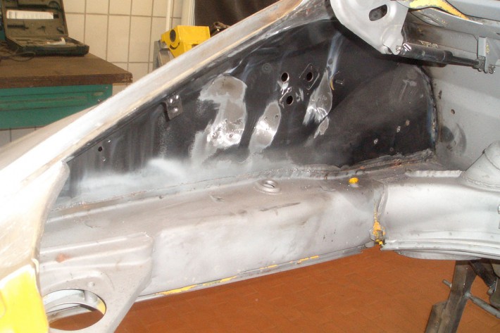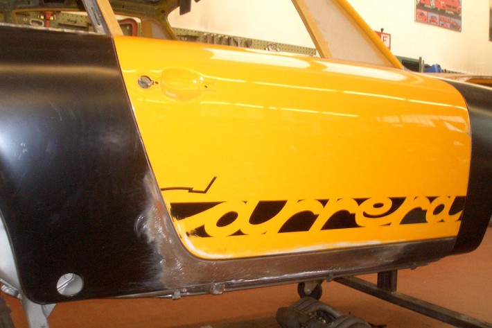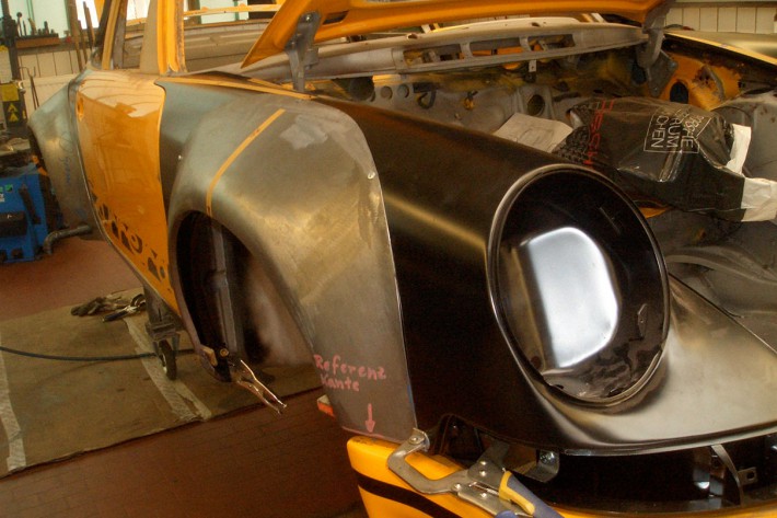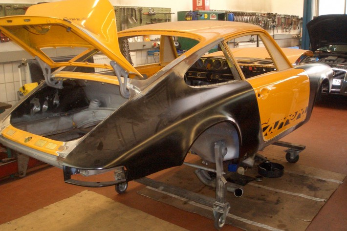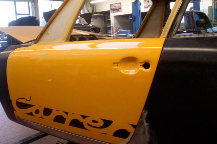 Der RSR kam zu uns nach einer sehr schlecht durchgeführten Restauration. Die Rostschäden wurden von einer Werkstatt mit GFK-Masse gefüllt und überspachtelt. Fahrzeug wurde von uns komplett neu Aufgebaut. Arbeitsaufwand: ca. 700 Stunden.